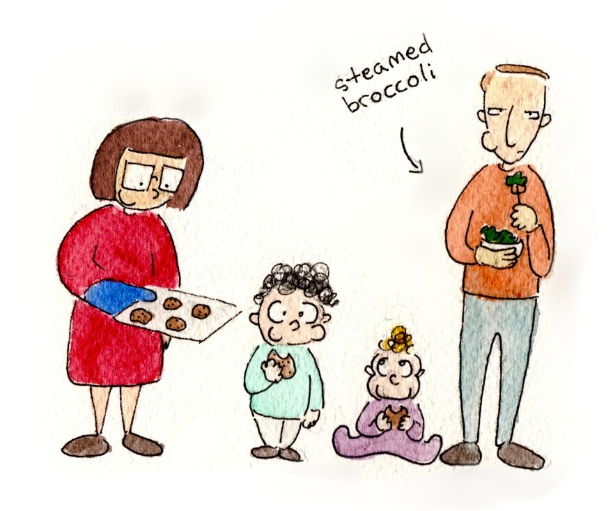 But gradually, his strict diet affected our family more and more. Because his food choices had such a direct impact on how he felt physically, he developed a habit of judging what he ate as "good" or "bad." When he would slip up and eat something "bad," our whole family would see his process of regret and self-punishment. Even though our mom's eating habits did not drastically change, she also began to categorize food in this way. Constantly judging food and fixating on the right way to eat became the norm.