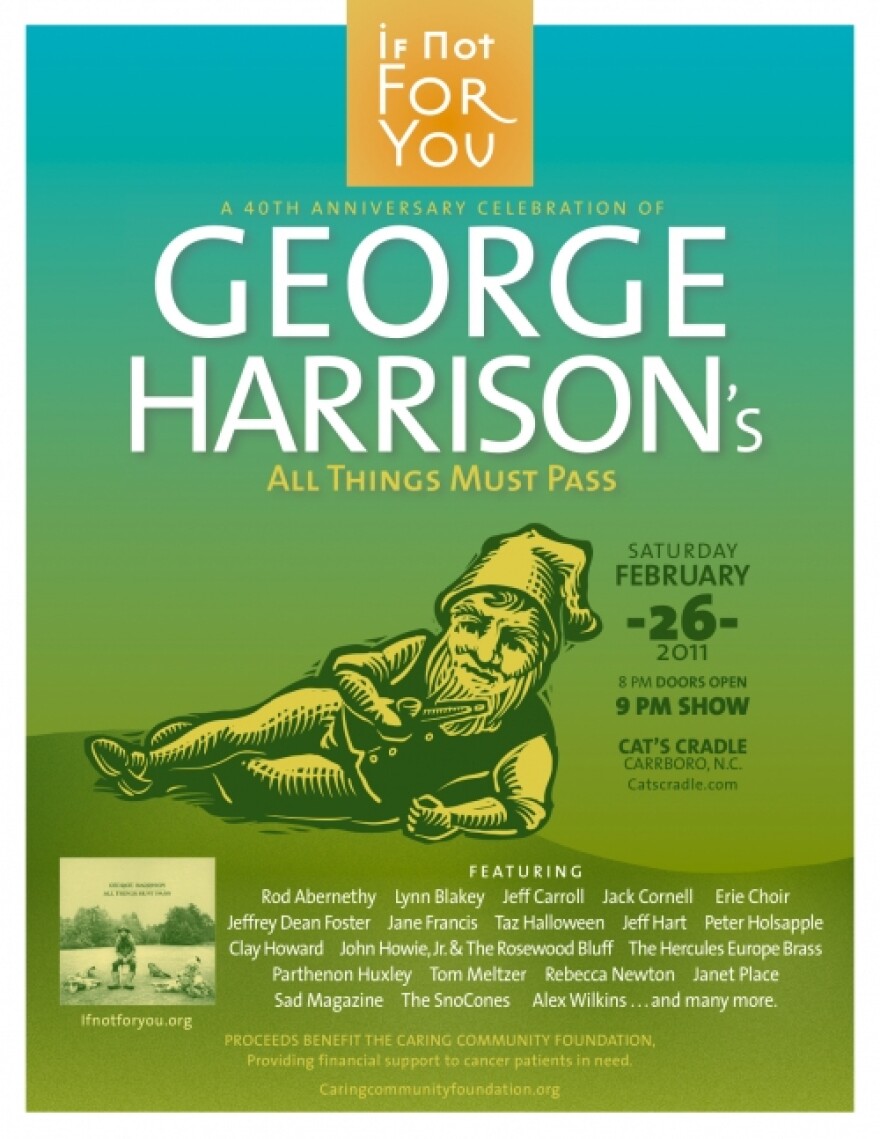 A group of local musicians will get together on Saturday night at the Cat's Cradle to celebrate the 40th anniversary of George Harrison's landmark solo album. The event is the brainchild of Toby Roan, a Triangle man who found solace and inspiration in listening to "All Things Must Pass" while his mother was battling cancer.