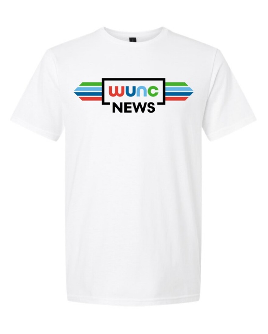 Get your short-sleeved shirt featuring the WUNC News logo.