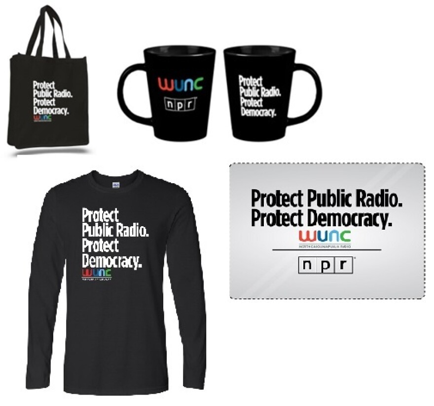 Get your WUNC t-shirt now. It’s a long-sleeved black shirt, and says “Protect Public Radio. Protect Democracy.”